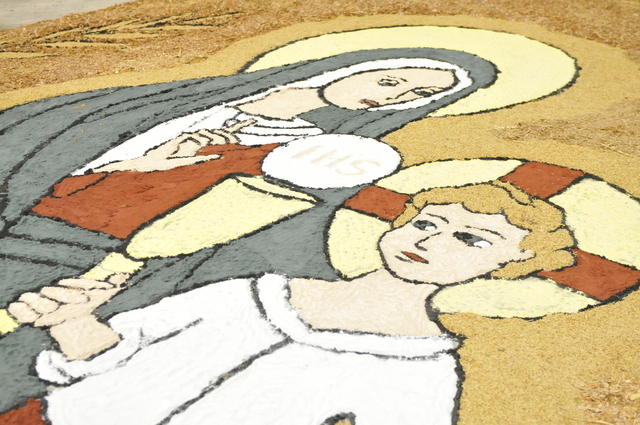 Há seis anos os desenhos do tapete são feitos pelo artista sacro Danilo Pagotto, de Santa Bárbara d’Oeste (SP). São 25 quadros (154 metros de tapete) criados com a aplicação de arabescos, que retratam principalmente os símbolos da Eucaristia. É o único dia do ano que o Santíssimo Sacramento sai em procissão pelas ruas das cidades.