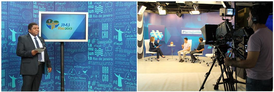 A TV Canção Nova (TVCN) contará com unidades móveis de satélite e um estúdio em Copacabana para a transmissão do programa Sorrindo pra Vida (às 8h), com orações e intenções voltadas aos jovens que participam do evento e o programa #tamujunto, a partir das 21h, com flashes ao vivo. Terá também a participação de convidados especiais todas as noites,entre eles padre Reginaldo Manzotti, padre Fábio de Melo, padre João Carlos de Almeida, conhecido como padre Joãozinho, professor Felipe Aquino, Luzia Santiago e padre Wagner Ferreira, da Canção Nova.